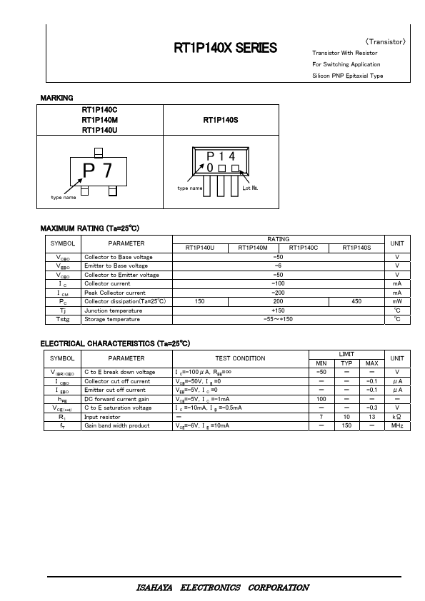 RT1P141C | Silicon PNP Epitaxial Type Transistor | Isahaya Electronics |
