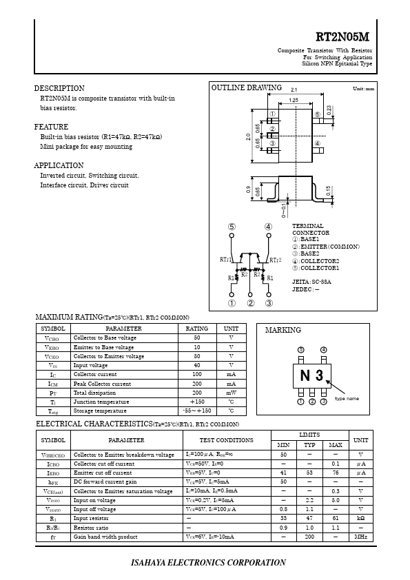 Overview: DESCRIPTION RT2N05M is composite transistor with built-in bias resistor.