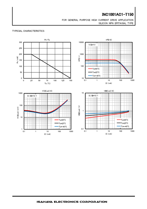 DESCRIPTION INC1001AC1 is a silicon NPN epitaxial type transistor.