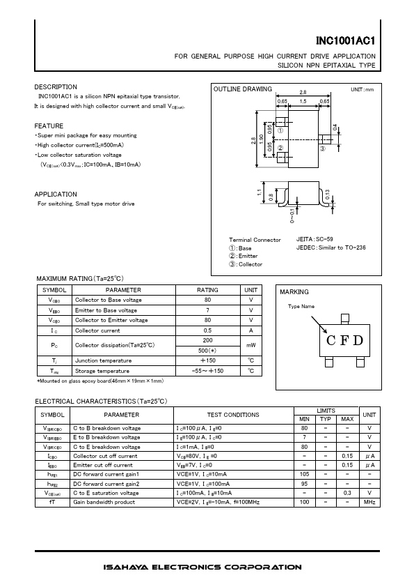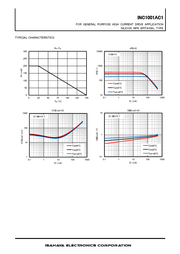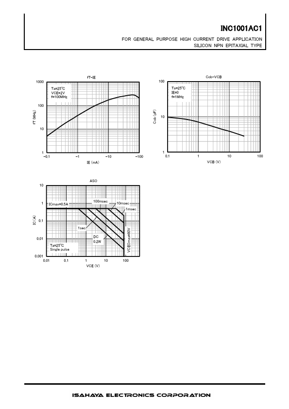 DESCRIPTION INC1001AC1 is a silicon NPN epitaxial type transistor.