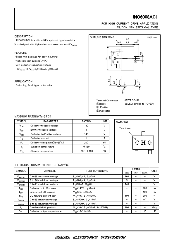 DESCRIPTION INC6008AC1 is a silicon NPN epitaxial type transistor.