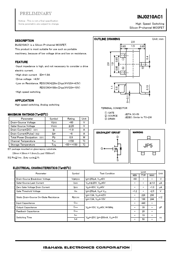INJ0210AC1 is a Silicon P-channel MOSFET.