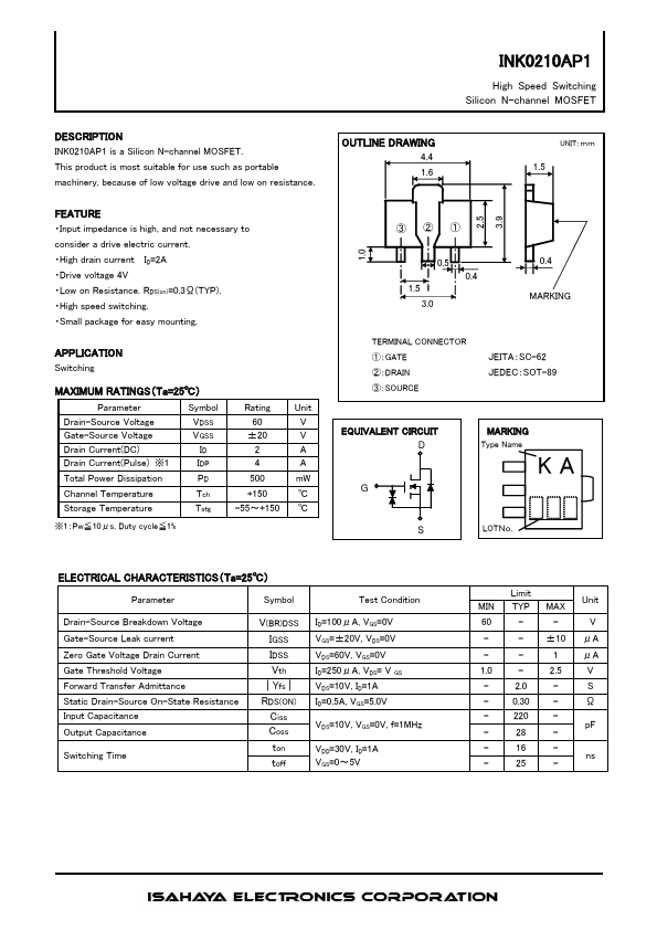 INK0210AP1 High Speed Switching Silicon N-channel MOSFET.
