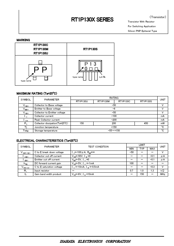 | RT1P130C | Silicon PNP Epitaxial Type Transistor |