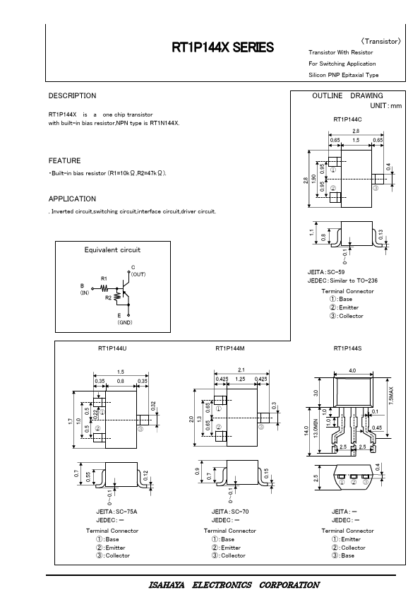 | RT1P141C | Silicon PNP Epitaxial Type Transistor |