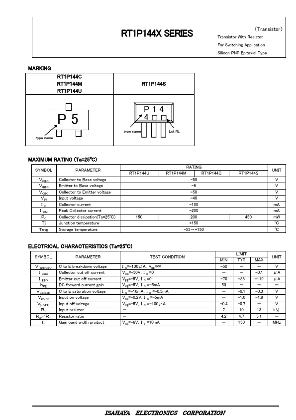 | RT1P144C | Silicon PNP Epitaxial Type Transistor |