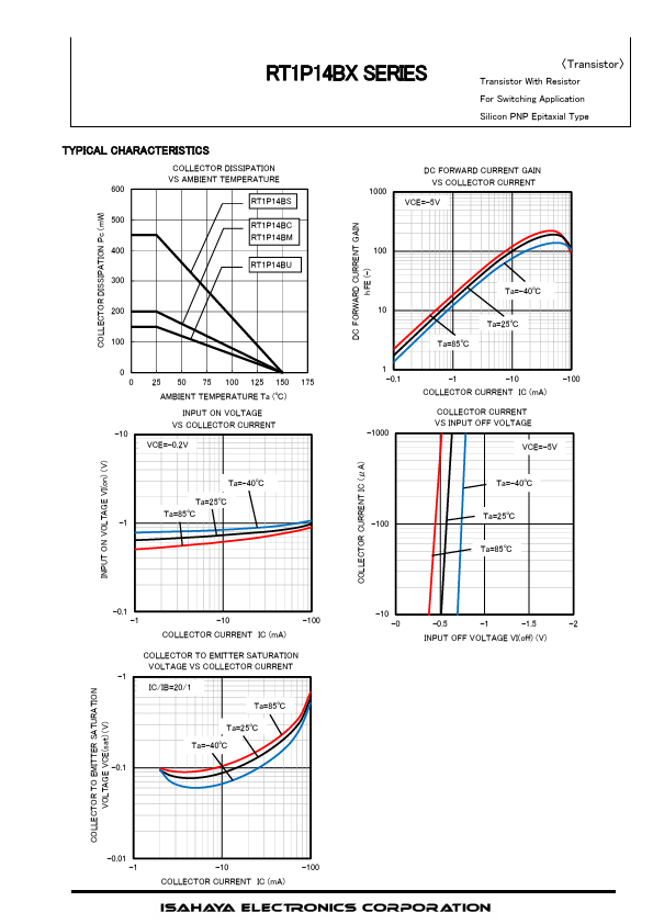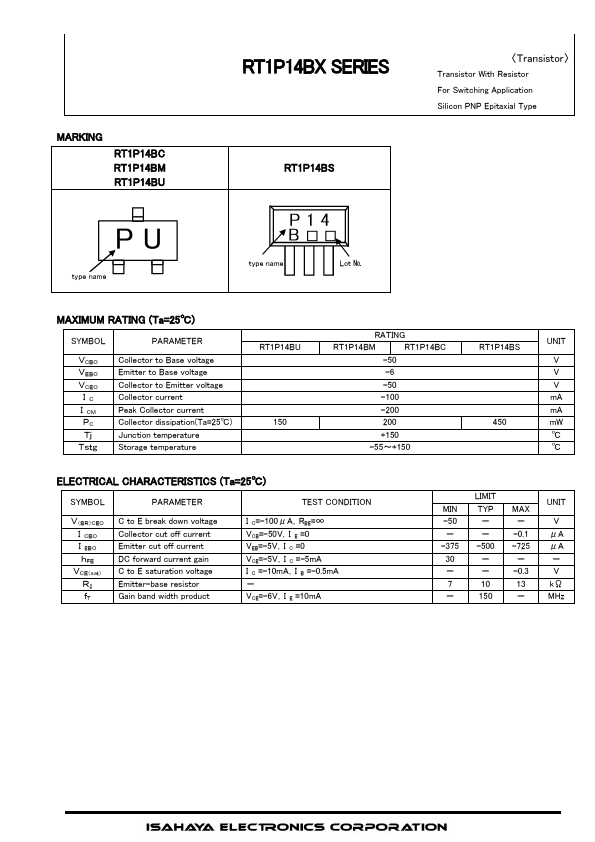 RT1P141S | Silicon PNP Epitaxial Type Transistor | Isahaya Electronics Corporation |