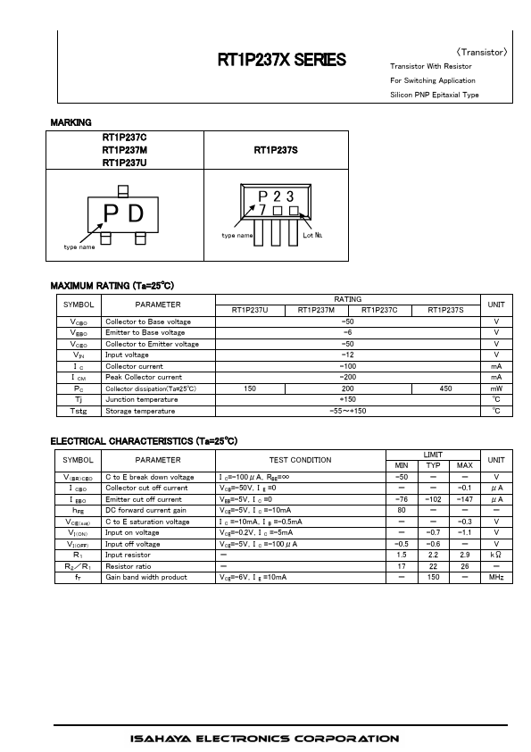 | RT1P237C | Silicon PNP Epitaxial Type Transistor |
