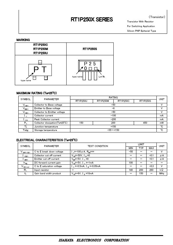 | RT1P250S | Silicon PNP Epitaxial Type Transistor |