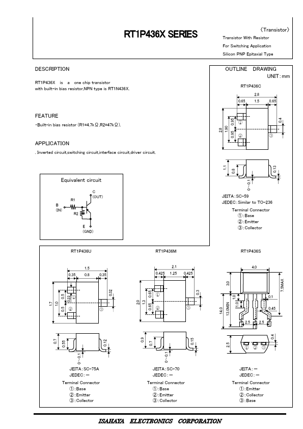 RT1P436X is a one chip transistor with built-in bias resistor,NPN type is RT1N436X.