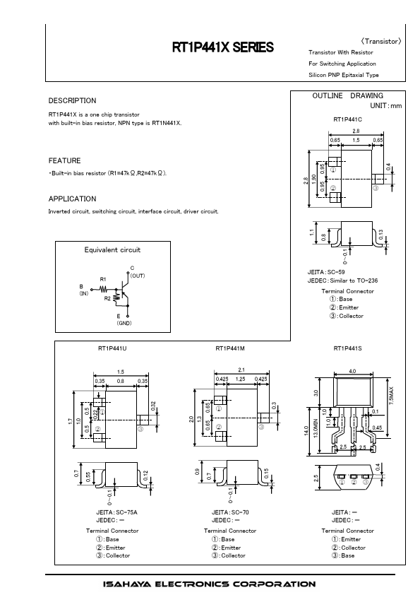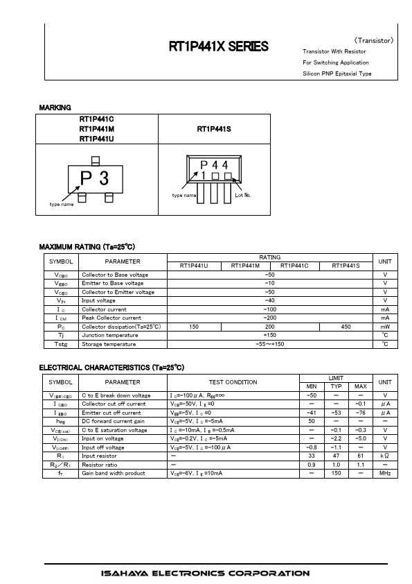 RT1P441X is a one chip transistor with built-in bias resistor, NPN type is RT1N441X.