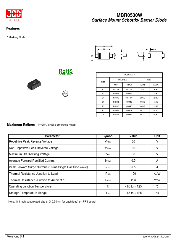 | MBR0540W | Surface Mount Schottky Barrier Diode |