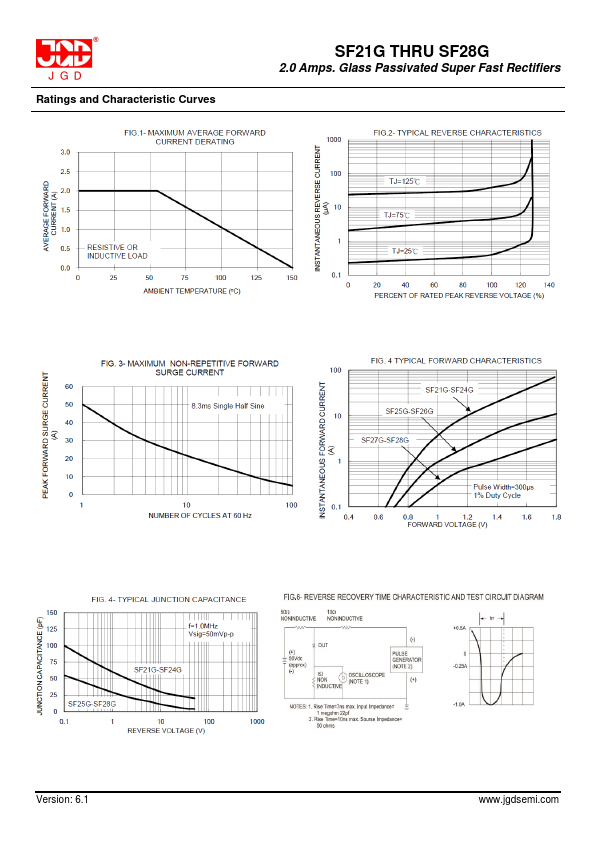Features SF21G THRU SF28G 2.0 Amps. Glass Passivated Super Fast Rectifiers High efficiency, Low VF High Current Capability High Reliability High Surge Current Capability Low Power Loss Package Outline Dimensions DO-15: Case: UL 94V-0 rate flame retardant Lead:.