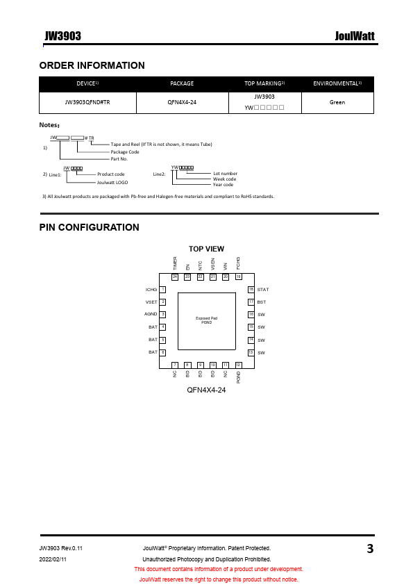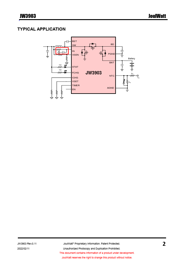 The JW®3903 is a highly integrated synchronous switch-mode boost charger for 2- or 3-cell series Li-ion and Li-polymer battery.