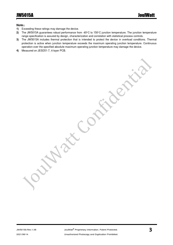 The JW®5015A is a current mode monolithic buck switching regulator.