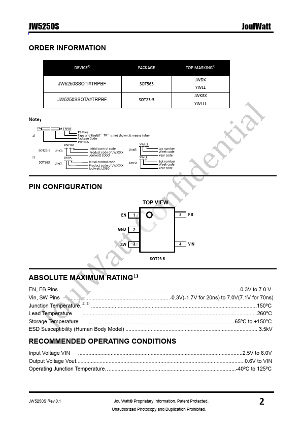 Operating with an input range of 2.5V-6.0V, the JW5250S delivers 1A of continuous output current with integrated P-Channel and N-Channel MOSFETs.