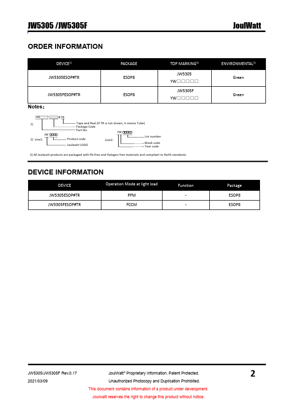The JW®5305 and JW®5305F are monolithic buck switching regulators based on I2 architecture for fast transient response.