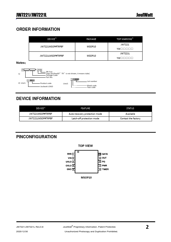 JW7221/W7221L offers inrush current control to protect MOSFET against system voltage droop and transients.