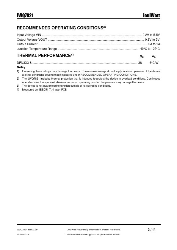 JWQ7821 supports input voltage ranges from 2.2 V to 5.5 V and adjustable output voltage range from 0.8 V to 5V.