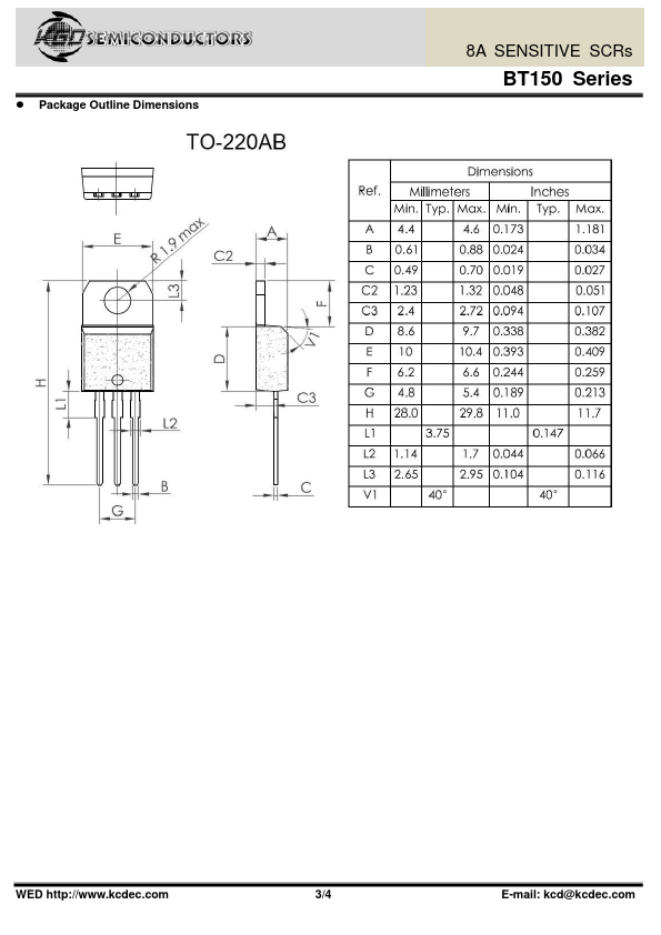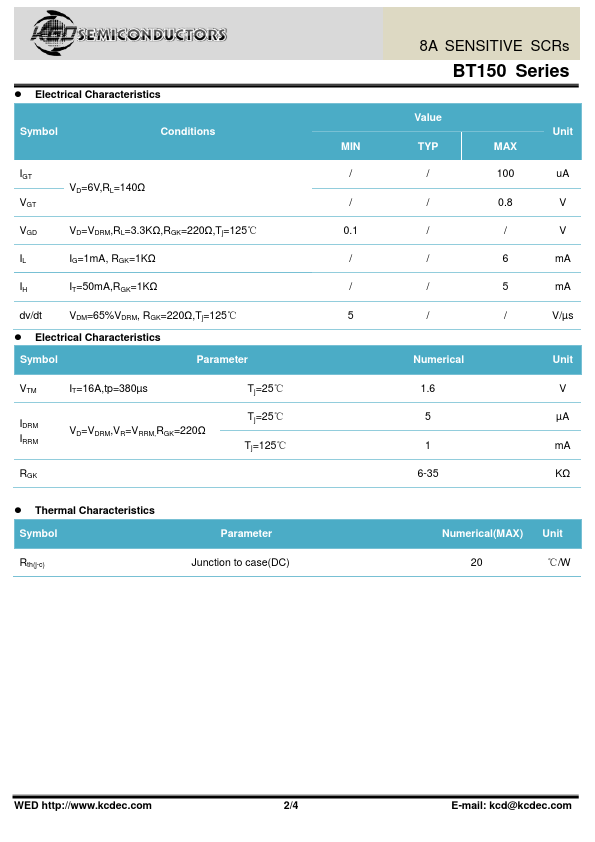 Highly sensitive triggering levels,the BT150 Series SCRs is suitable for all applications,where the available gate currentis limited,such as capacitive discharge ignitions,motor control in kitchen aids, overvoltage crowbar protection in low power supplies...