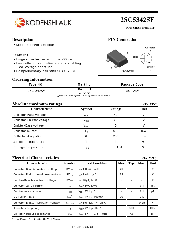 2SC5342SF | NPN TRANSISTOR | AUK corp |