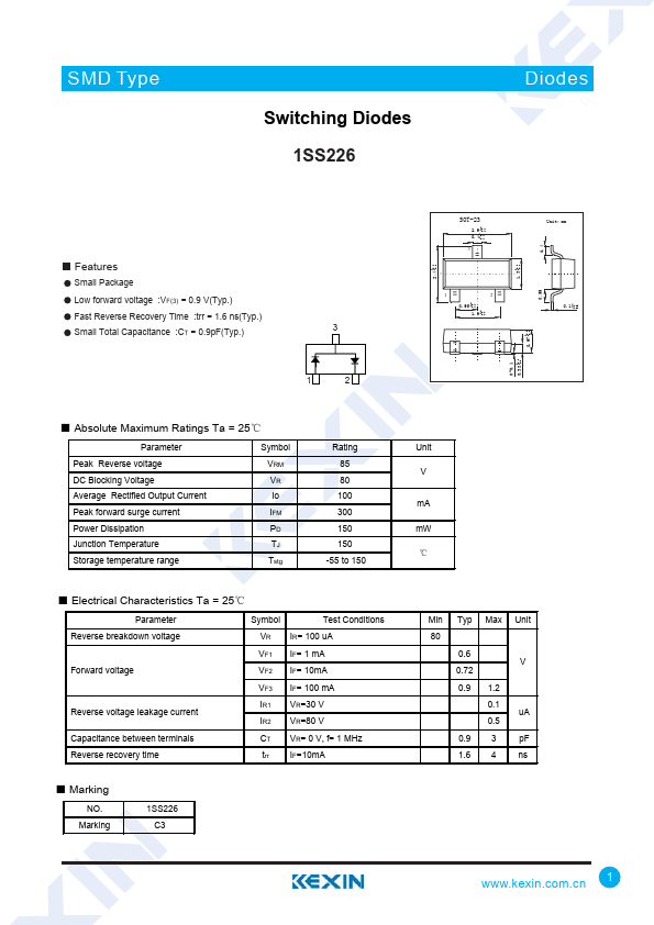 1SS226 | SURFACE MOUNT FAST SWITCHING DIODE | WON-TOP |