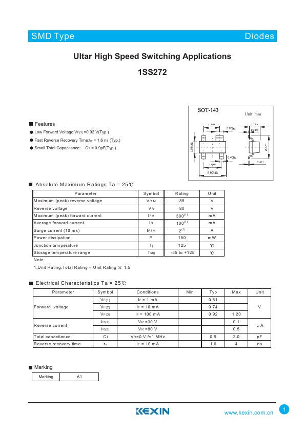 | Datasheet | 1SS272-Kexin.pdf |