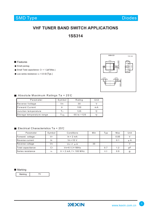 SMD Type Diodes VHF TUNER BAND SWITCH APPLICATIONS 1SS314.