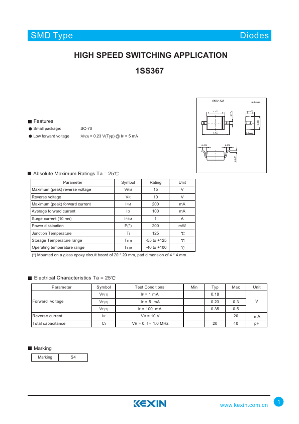 SMD Type Diodes HIGH SPEED SWITCHING APPLICATION 1SS367.