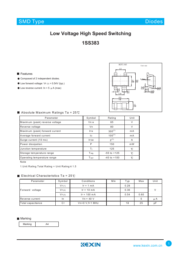 SMD Type Low Voltage High Speed Switching 1SS383 Diodes.