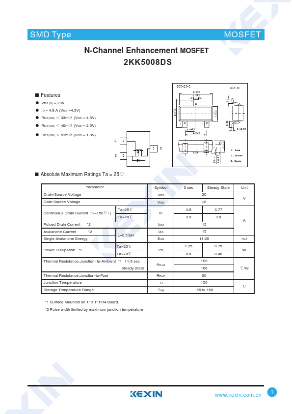 Thermal Resistance.Junction- to-Ambient *1 tİ5 sec