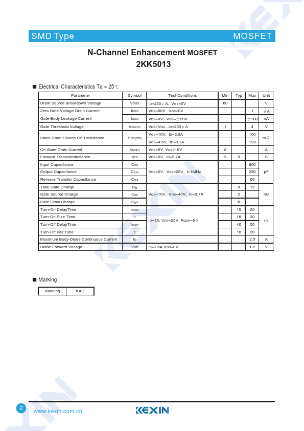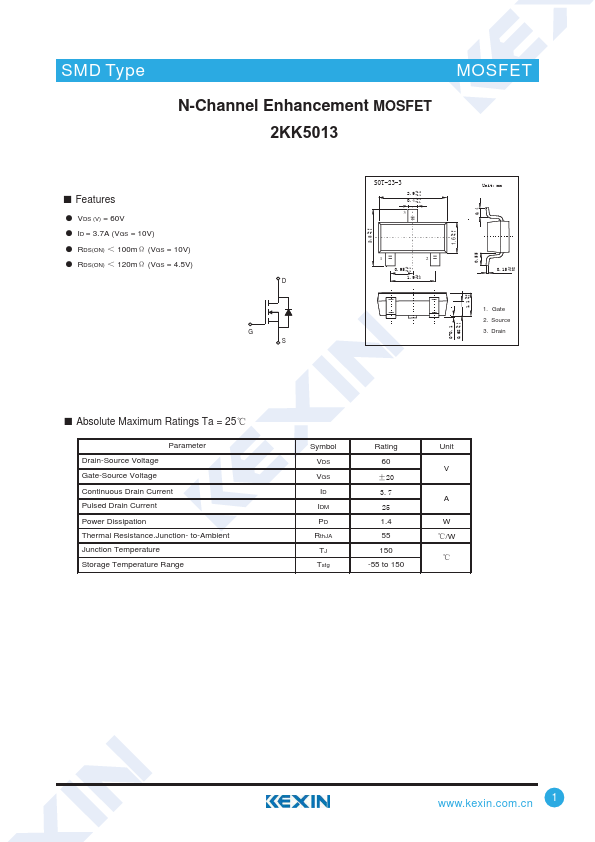 N-Channel Enhancement MOSFET 2KK5013