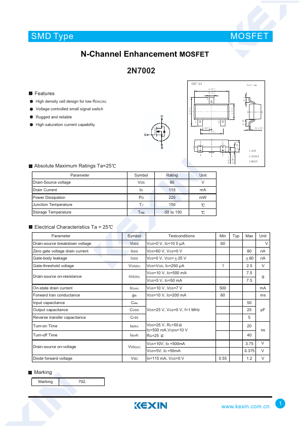 High density cell design for low RDS(ON) Voltage controlled small signal switch Rugged and reliable High saturation current capability