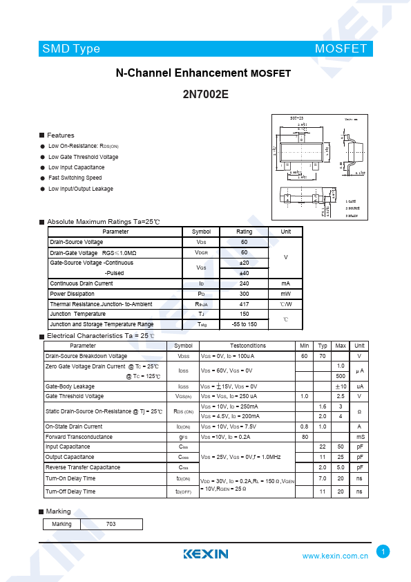 SMD Type N-Channel Enhancement MOSFET 2N7002E