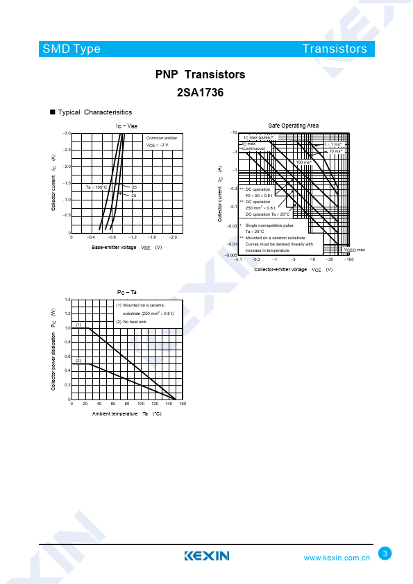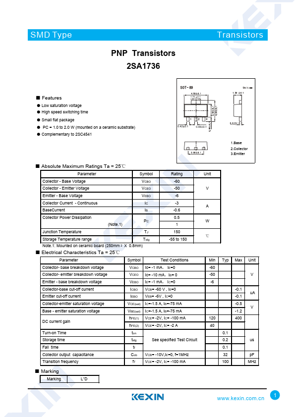 ● Small flat package ● PC = 1.0 to 2.0 W (mounted on a ceramic substrate) ● Complementary to 2SC4541