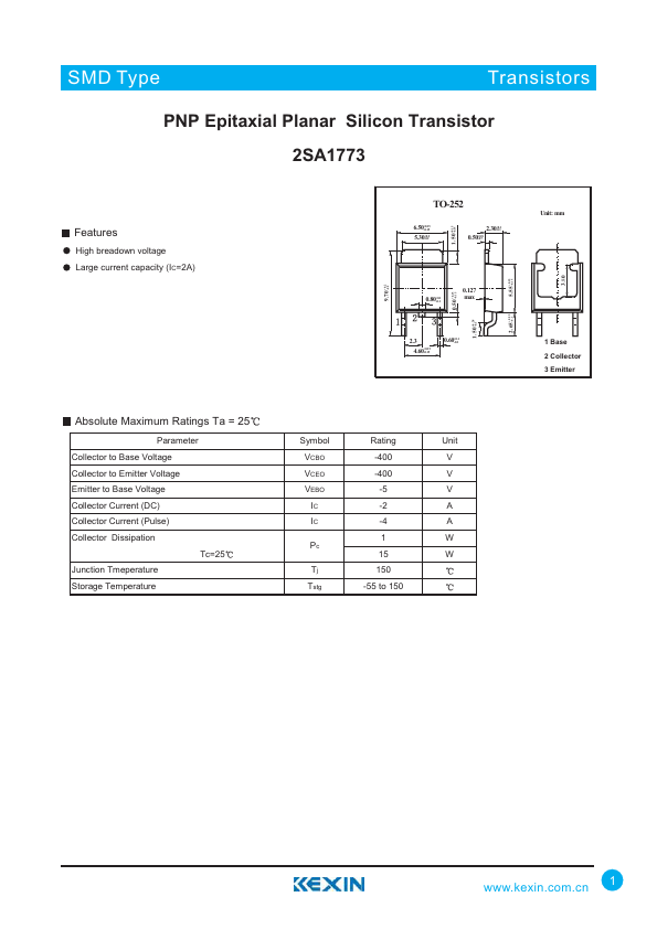 | 2SA1773 | PNP Transistor | Sanyo Semicon Device |