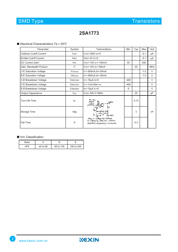 Overview: SMD Type Transistors PNP Epitaxial Planar Silicon Transistor.