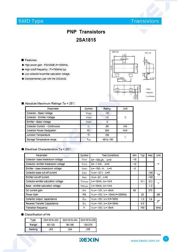 PNP Transistors 2SA1815