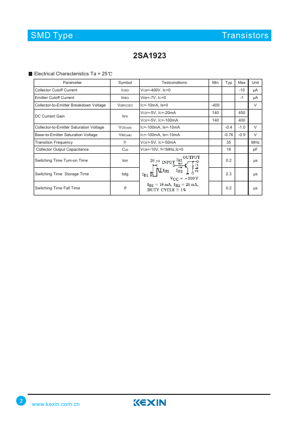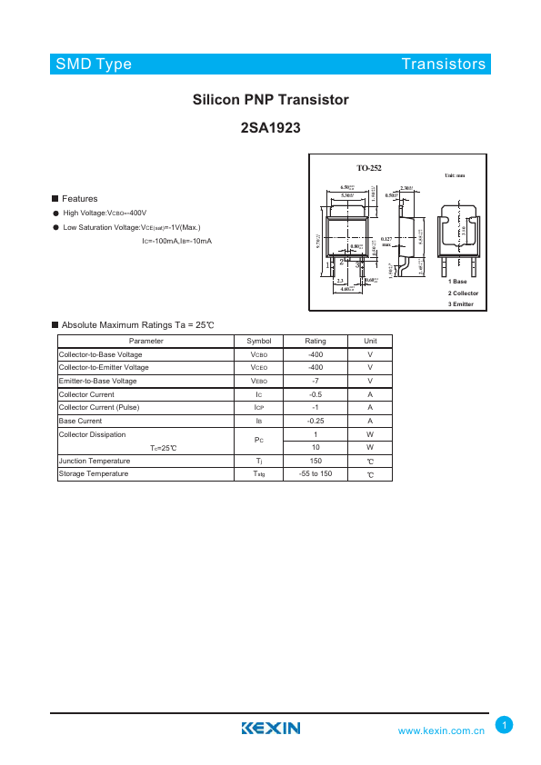 Overview: SMD Type Silicon PNP Transistor 2SA1923 Transistors.