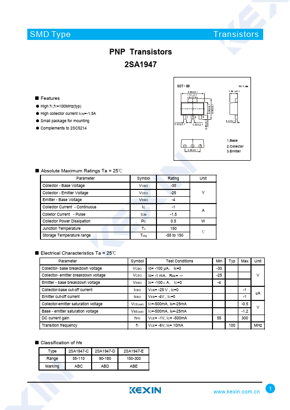 PNP Transistors 2SA1947