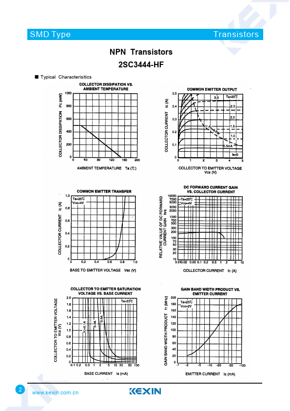 ● High Voltage ● High collector current ● Low collector to emitter saturation voltage ● High collector dissipation Pc=500mW ● Small package for mounting ● Complementary to 2SA1364-HF