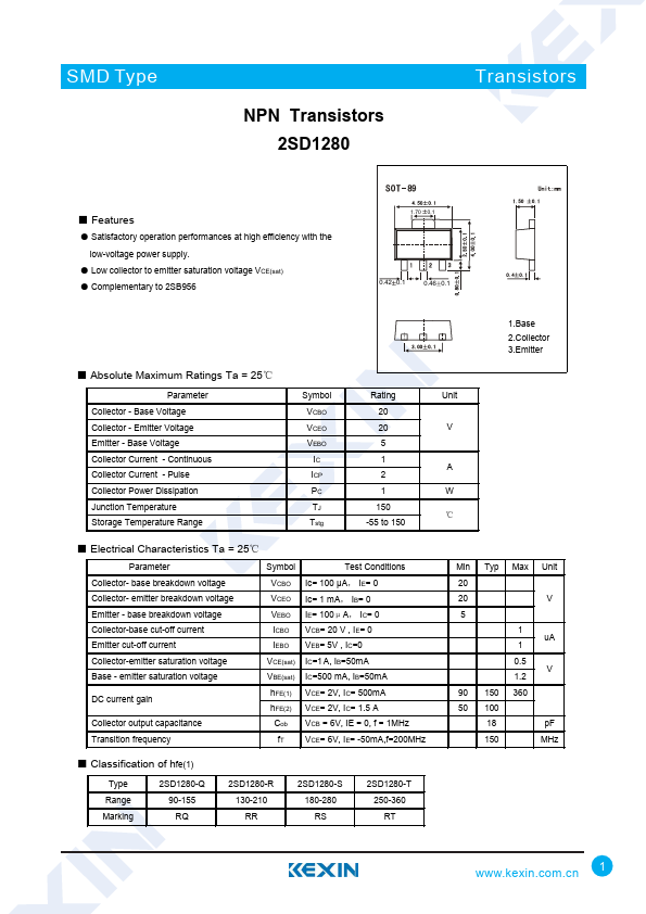 SMD Type NPN Transistors 2SD1280 Transistors ■.