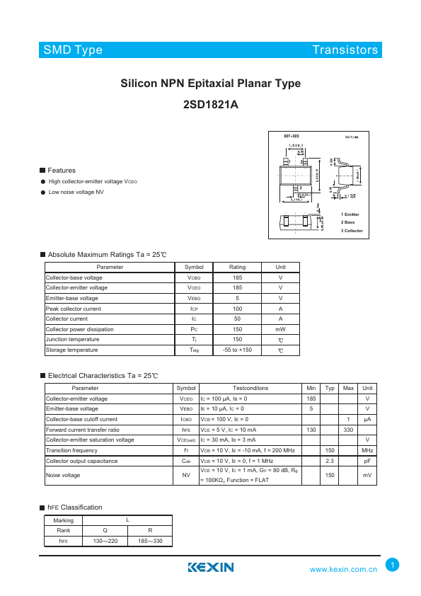 SMD Type Transistors Silicon NPN Epitaxial Planar Type 2SD1821A.