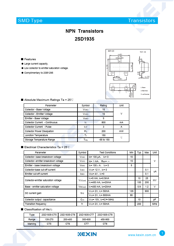 SMD Type NPN Transistors 2SD1935 Transistors ■.