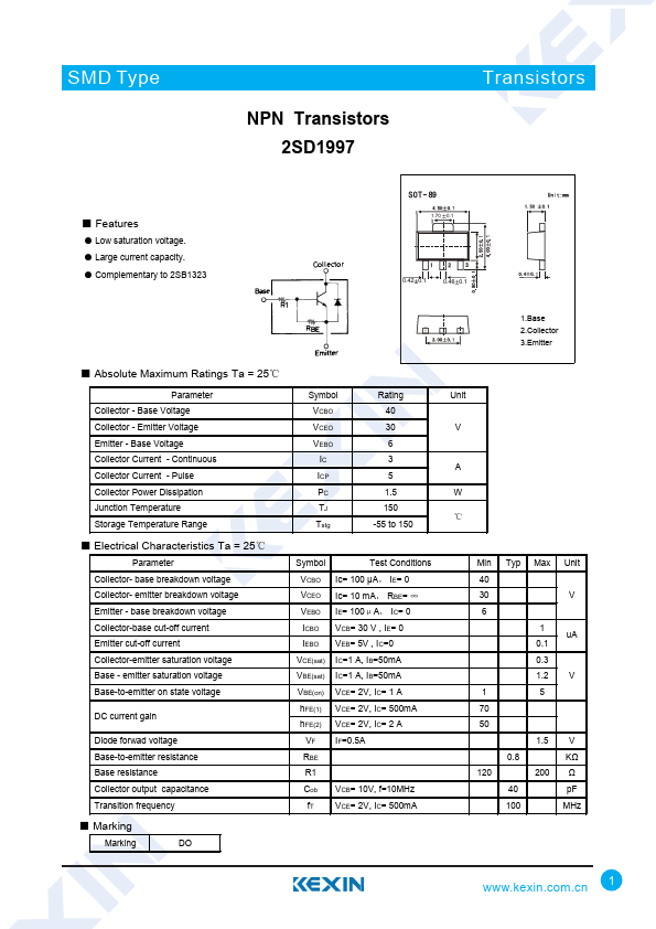 SMD Type NPN Transistors 2SD1997 Transistors ■.