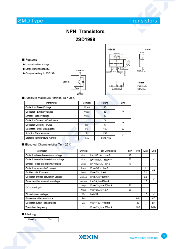 SMD Type NPN Transistors 2SD1998 Transistors ■.