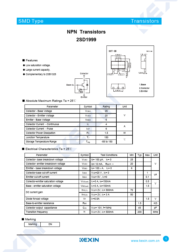 SMD Type NPN Transistors 2SD1999 Transistors ■.