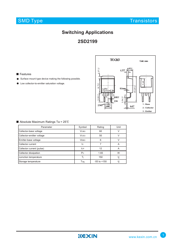 SMD Type Switching Applications 2SD2199 Transistors.