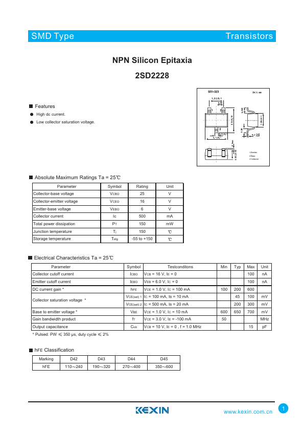 SMD Type NPN Silicon Epitaxia 2SD2228.