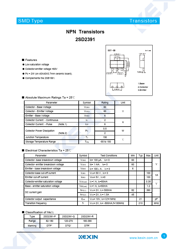 SMD Type NPN Transistors 2SD2391 Transistors ■.